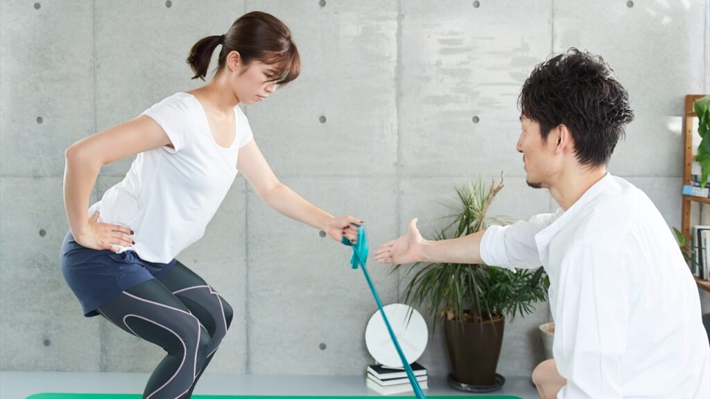 自宅で行う種目をトレーナーと一緒に行って、マスター